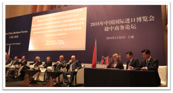 On the morning of November 6, 2018, Confucius Institute Headquarters (Hanban), University of Finance and Administration (VSFS), and China Jiliang University (CJLU) jointly signed in Shanghai a cooperation agreement on establishing Confucius Institute at VSFS. Czech President Zeman witnessed the signing ceremony of the tripartite agreement.