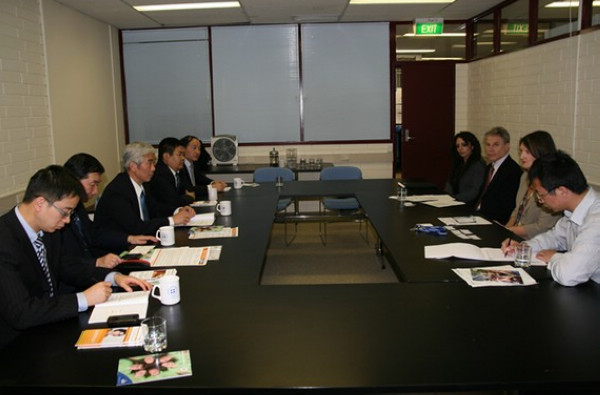 During the visit in Australia, the delegation visited the University of Ballarat. The delegation had important communication with the first vice president of the school, Ms. Rowena Coutts. Accompanied by her, the delegation then visited John Yearwood, Bob O 'Shea, Christine Kimonides and Mal Vallace, who are respectively the president of the Science and Information Technology and Engineering College, the first vice president of the Business College, the director of the English Training Center and Humanities College, and the principal of the Technology Zone. Based on the existing cooperation, the delegation and the representatives of the University of Ballarat discussed the project of recruiting students, exchanging teachers and students, academic exchanges, research cooperation, and other issues. Various agreements for cooperation and communication were reached between the two schools. The delegation visited the campus of the University of Ballarat and had their afternoon tea with the representative teachers and students of the Science and Information Technology and Engineering College. During the visit, the delegation paid a visit to doctor Yang Gao, who is a part-time professor of CJLU working at the University of Ballarat.