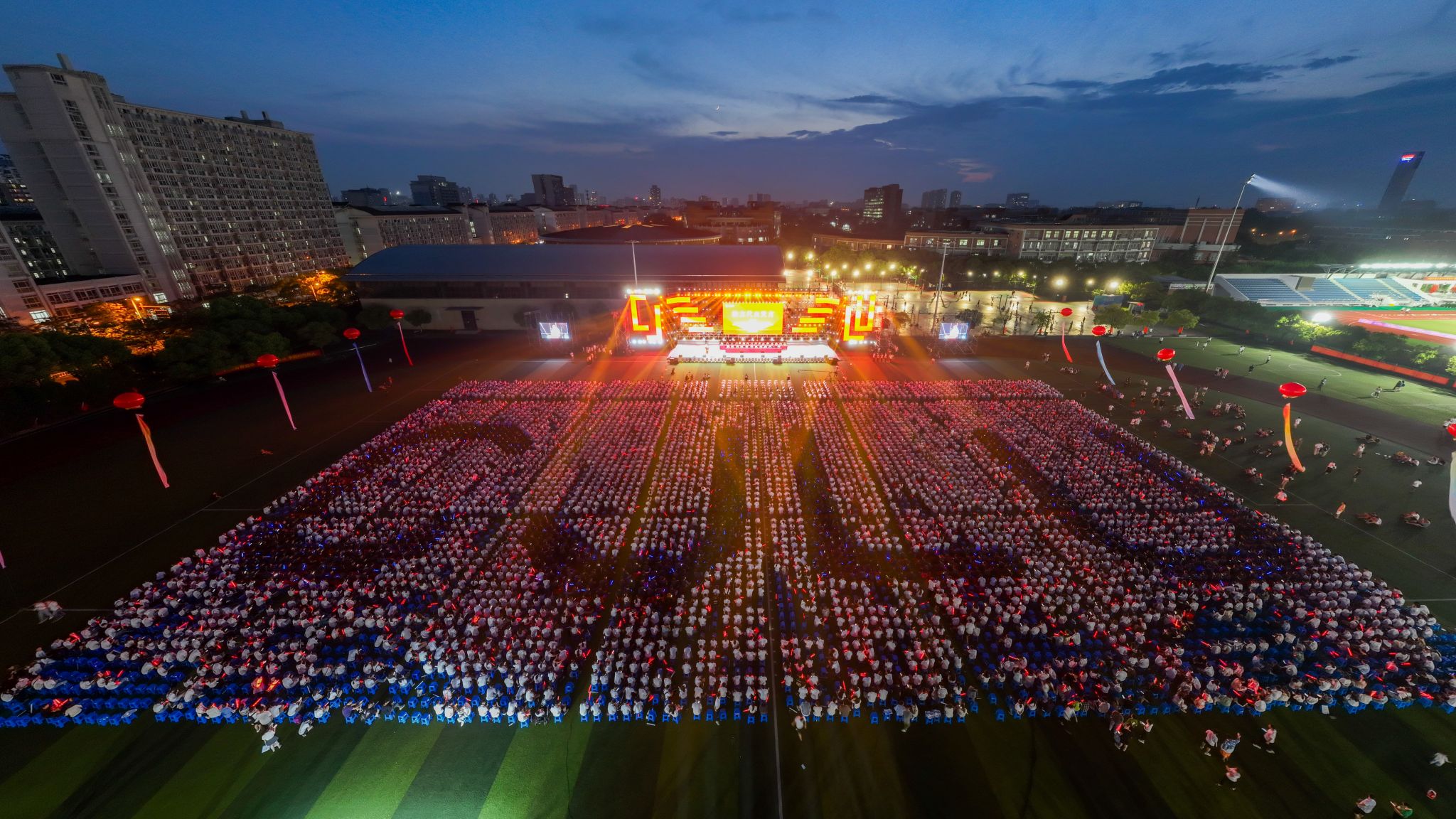 On the evening of August 29, China Jiliang University (CJLU) held the Opening Convocation Ceremony to welcome new students. Zhang Tuqiao, Xu Jiangrong, Xiao Gang, Cheng Gang, Yu Xiaoping, Ge Hongliang, Zhang Jiansheng, Jin Shangzhong, Wang Dizhao, Zhang Yong, Wang Binrui and other leaders as well as teacher representatives and new students attended the ceremony.