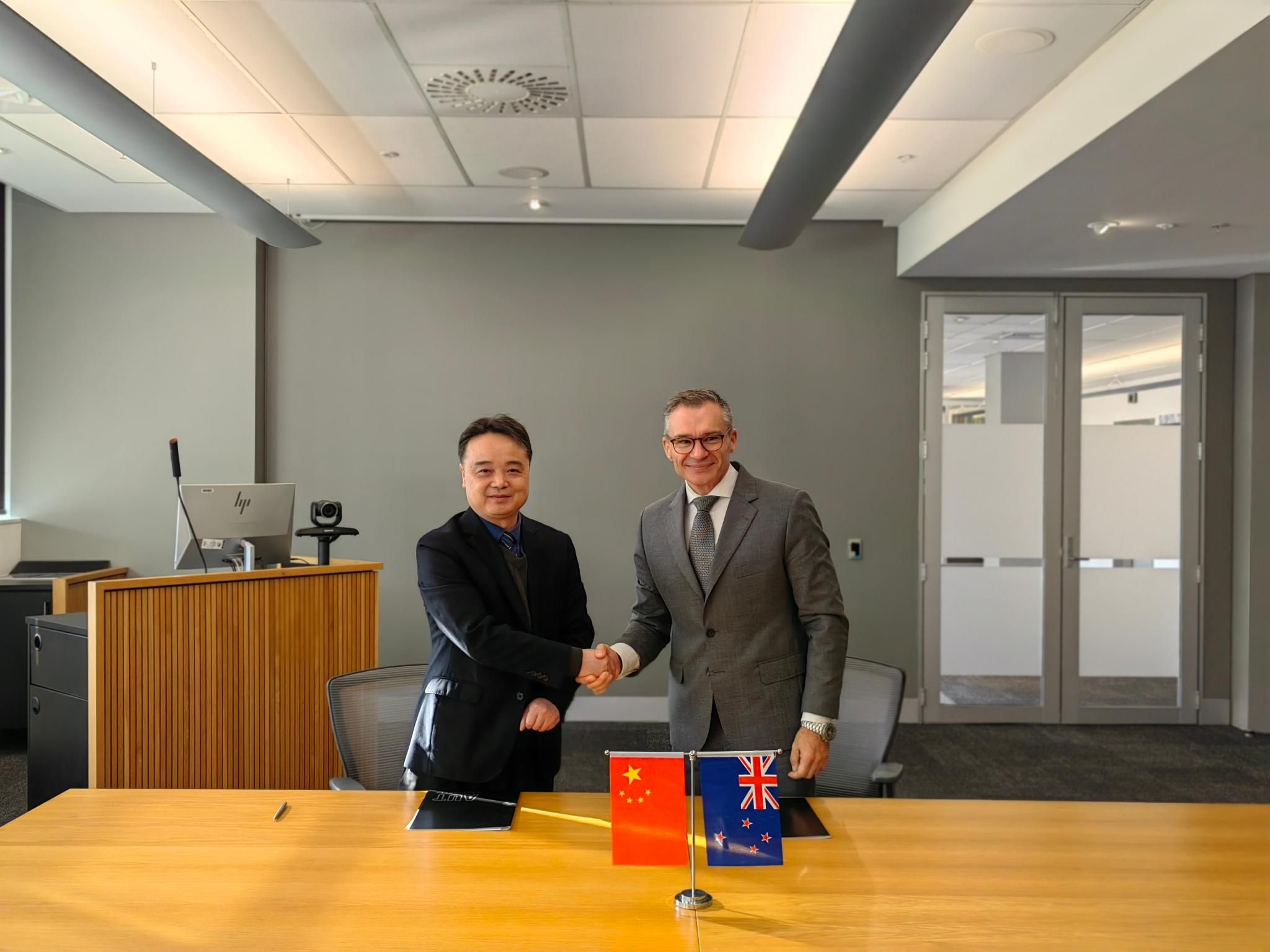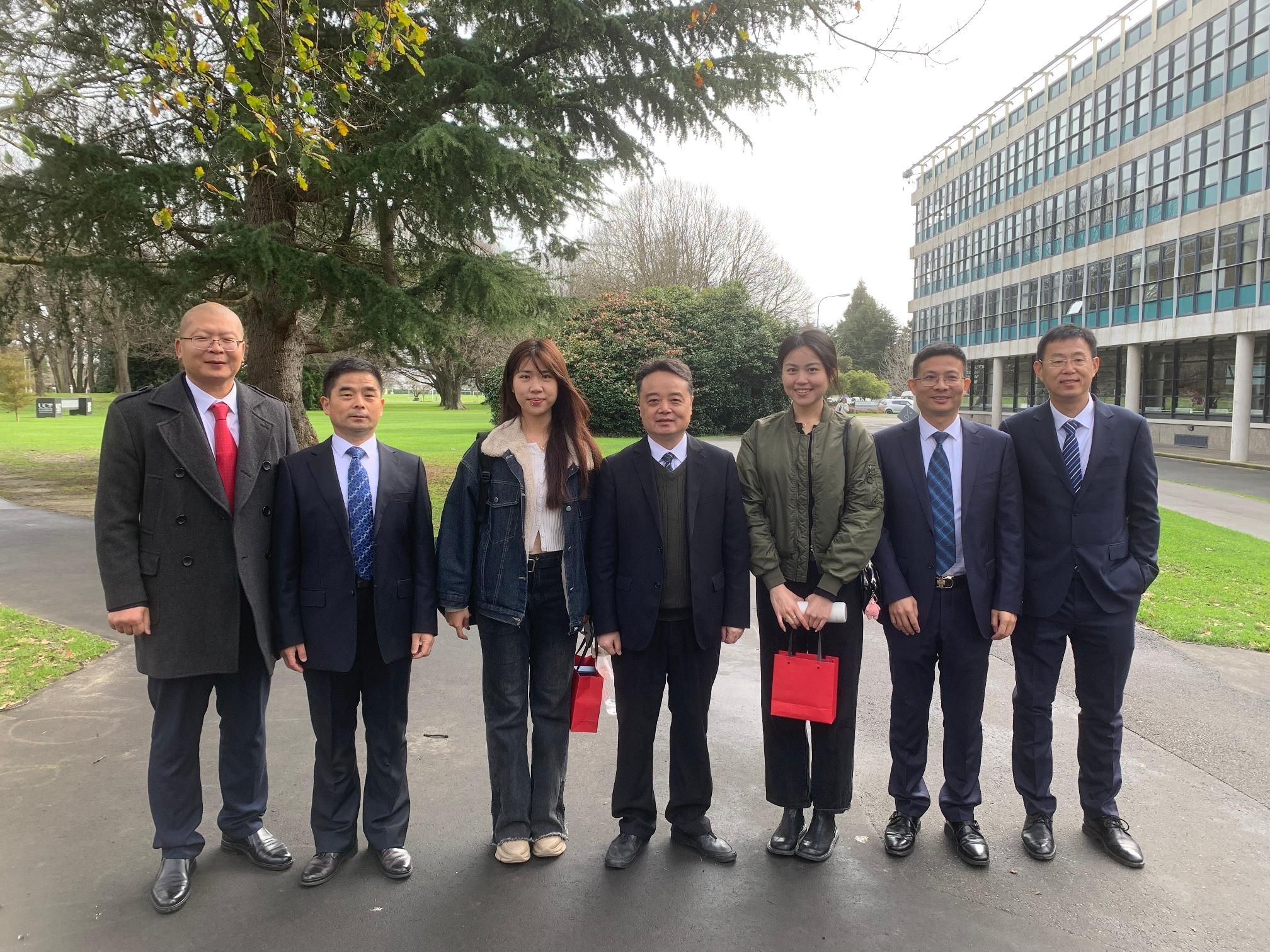From July 30 to August 6, President Xu Jiangrong led a delegation on a visit to Auckland University of Technology (AUT), the University of Canterbury in New Zealand, and the University of Wollongong in Australia. The visit aimed to explore new channels for collaborative education with world-class international institutions, discuss new models for joint student training, expand opportunities for students to study abroad, negotiate the establishment of Sino-foreign cooperative educational institutions, and sign inter-university cooperation agreements. The delegation also held discussions with our students and alumni studying or working in New Zealand and Australia. Accompanying President Xu were Wang Xinqing, Dean of the Graduate School; Wang Jianqi, Director of the International Exchange and Cooperation Office; Zhou Haomiao, Dean of the School of Information Engineering; and Yu Mingzhou, Dean of the School of Science.