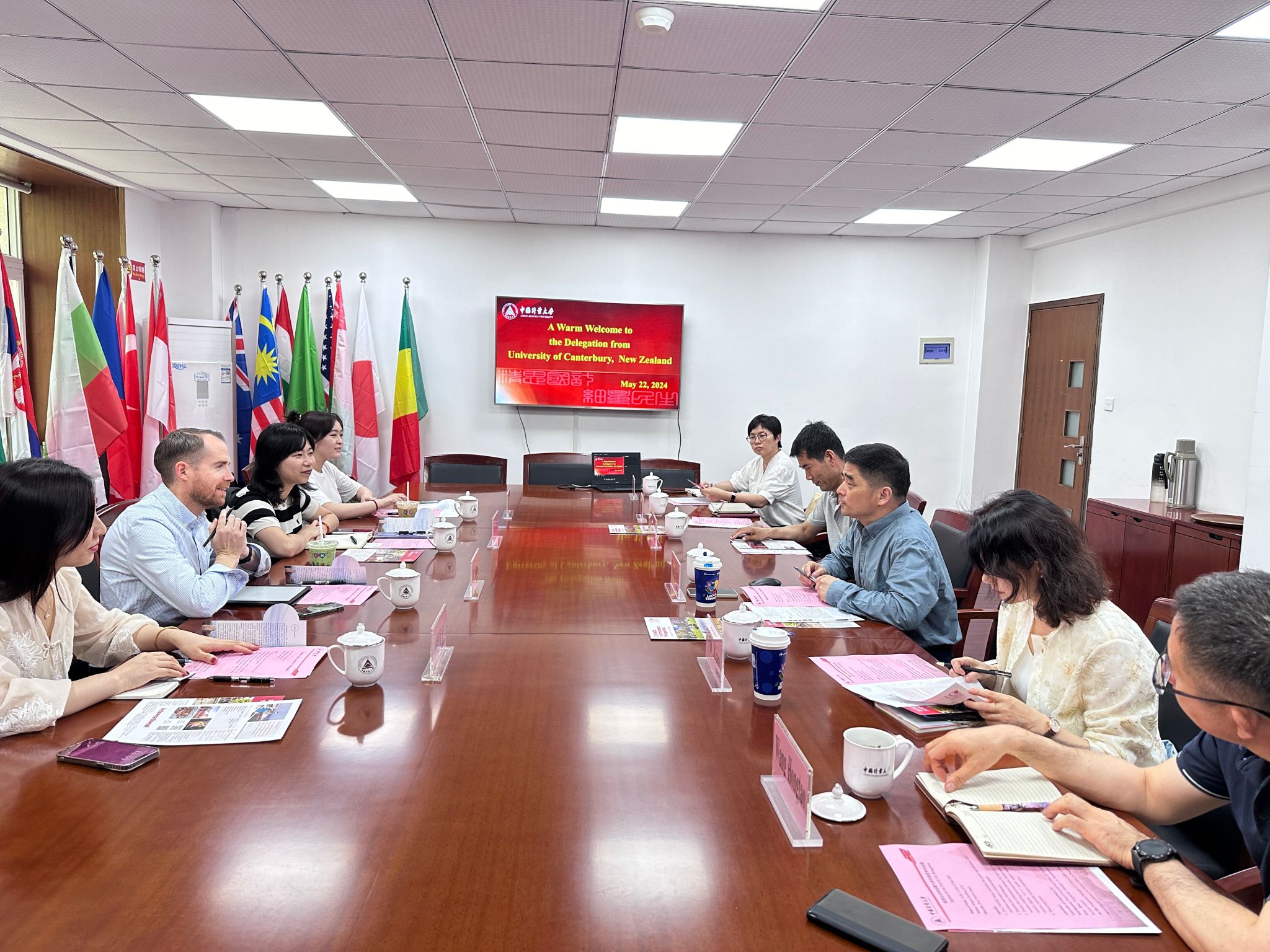 On the afternoon of May 22, a delegation from the University of Canterbury, including Will Shannon, Head of International Affairs at the Business School, and Tracy Zhai, Director of International Affairs, visited our university. The delegation was warmly welcomed by Wang Jianqi, Director of the International Exchange and Cooperation Office, Yu Xiao, Associate Dean of the College of Economics and Management, along with relevant department heads. The meeting took place in Room A216 of Mingde Building.