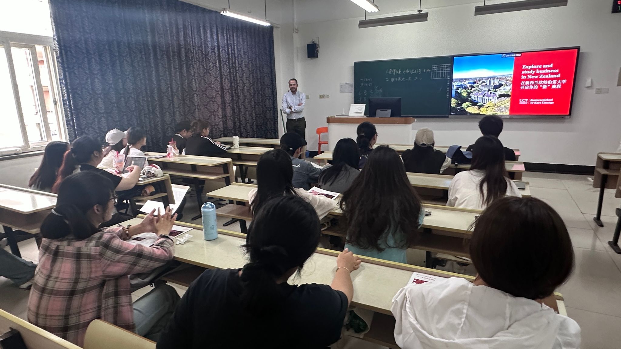 After the meeting, the delegation visited the College of Economics and Management and attended a project exchange session. Will Shannon provided a detailed introduction to the degree programs and short-term study opportunities designed for international students at the University of Canterbury. He also highlighted New Zealand's natural beauty and cultural environment, showcasing successful examples and extensive experience in promoting international student exchanges. The students showed strong interest and engaged actively in the discussion.