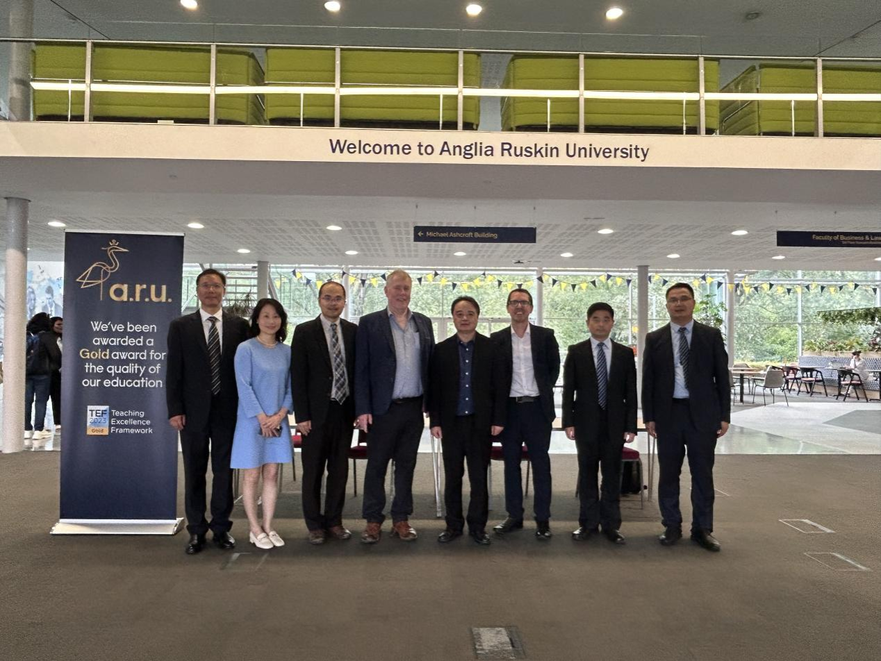 On June 5, the delegation visited the Cambridge campus of Anglia Ruskin University (ARU) and met with leaders from the Business and Law School to discuss the renewal of the joint undergraduate program in Financial Engineering. The meeting was attended by Mohammad Ali, ARU's Vice Chancellor and Dean of the Business and Law School, Swetketu Patnaik, Dean of the School of Economics, Finance and Law, Simon Wood, Director of International Partnerships, Jin Jing, Senior International Cooperation Officer, Simon Evans, Director of the International Partnerships Centre, and Danielle Talbot from the Education Cooperation Centre. Vice Chancellor Mohammad Ali warmly welcomed the delegation and provided an overview of ARU’s history and the achievements of the ongoing collaboration. President Xu shared information about our university’s background and research strengths, reviewed the successes of the joint program over the past decade, and expressed a desire to expand future cooperation and encourage more students to pursue studies at ARU. The two sides discussed further collaboration opportunities, including summer student camps, faculty and student exchange programs, and joint master's level programs. They agreed to continue the existing undergraduate Financial Engineering program and reached a consensus on exploring higher-level collaborative programs and enhancing faculty and student exchanges.