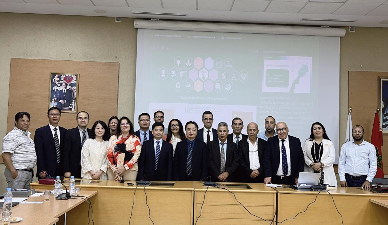 On the morning of June 7, the delegation visited Université Hassan II de Casablanca (UH2C) in Morocco. Established in 1975, UH2C is one of Morocco's youngest public universities and the largest by student enrollment, with over 140,000 students. It is also one of Africa's key higher education institutions, renowned for its advanced facilities, extensive library resources, and well-equipped laboratories, providing a high-quality learning environment and rich academic resources. The delegation was warmly received by Vice President Mustapha Lkhider, who hosted a formal meeting with the delegation. Vice President Fatima Zahra Alami, Director of International Cooperation Omar El Ghazi, Director of Faculty Training Alami Younsi Saad, Dean of the National Advanced Technical Institute Omar Bouattane, and Fadma Ait Mous, Director of the Confucius Institute at UH2C, participated in the discussions. The meeting focused on opportunities for student exchange, faculty collaboration, and research partnerships, culminating in the signing of a cooperation memorandum. In the afternoon, the delegation toured UH2C’s library and key laboratories.