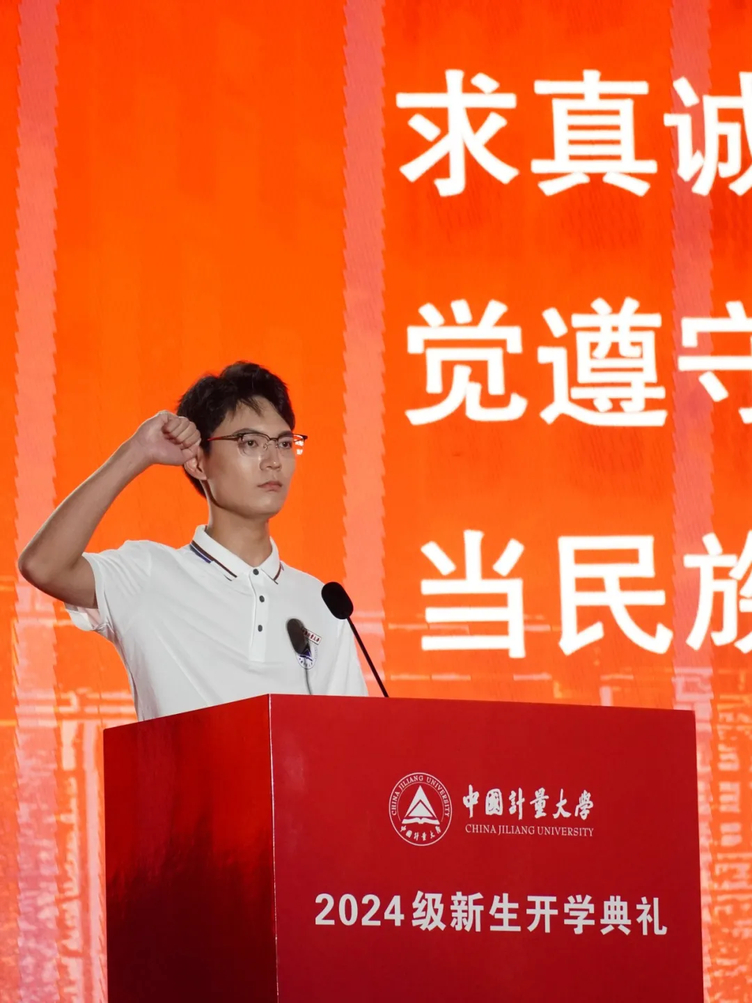 As the university leaders solemnly presented the school emblems to the freshman representatives, this moment symbolized that each student, hailing from different corners of the country, is now entrusted with carrying forward the school motto, "Developing national economy by metrology; Improving people's livelihood through measurement." They will embark on their journey to grow into dedicated "New CJLU members," committed to the well-being of the nation and the people.