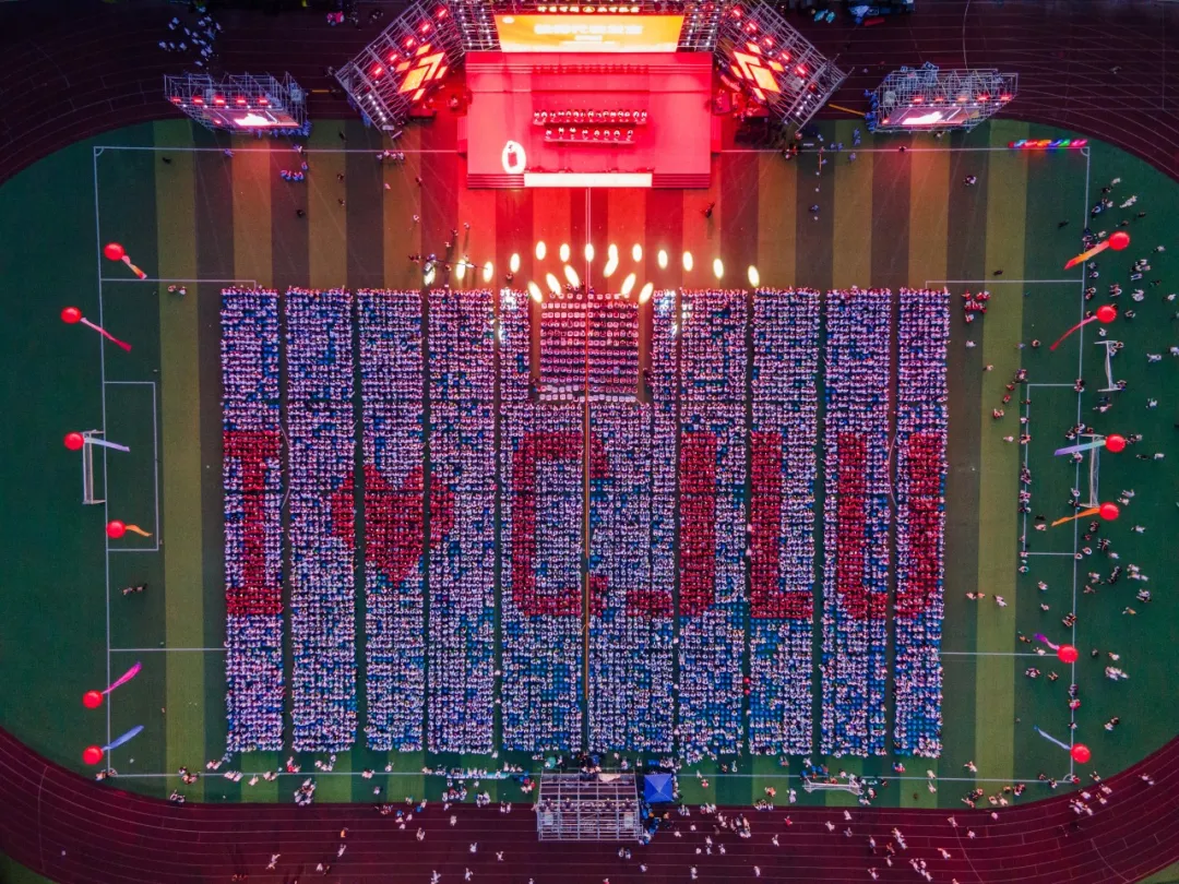 The 2024 freshmen, dressed in various colors, gradually took their seats, forming a striking "I♥CJLU" pattern in red and white. This heartfelt tribute to China Jiliang University by the new students was vividly displayed on the live broadcast, creating an especially impressive and moving scene.