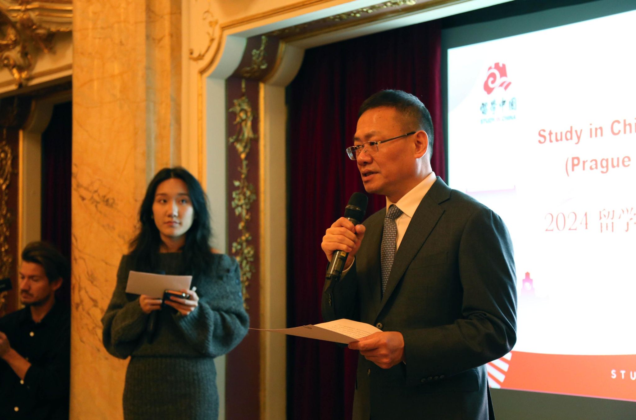 Xia Jianhui, Deputy Director of the China Education Ministry’s Study Abroad Service Center, delivered a speech, stating that this is the first time the "Study in China" Education Fair has been held in the Czech Republic. He expressed the hope that this event would promote the exchange of students between China and the Czech Republic. It aims to showcase China’s high-quality educational resources to Czech students and invite them to study in China, while also offering greater insights into Czech education and universities, encouraging Chinese students to pursue studies in the Czech Republic.