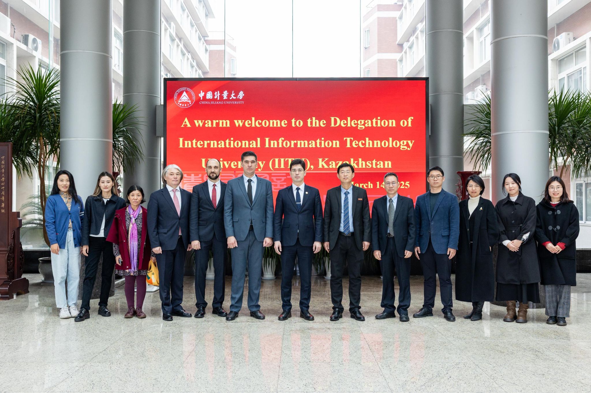 On the morning of March 14, a delegation from Kazakhstan International Information Technology University (IITU), led by Rector Isakov Assylbek and Vice Rector Diyusebayev Dauren, visited our university for an exchange and cooperation discussion. Xu Jiangrong, Secretary of the CPC China Jiliang University Committee, and Vice President Wang Xinqing attended the reception. Representatives from the College of International Education, the Research Institute of Science and Technology, the College of Information Engineering, and the International Office participated in the meeting.