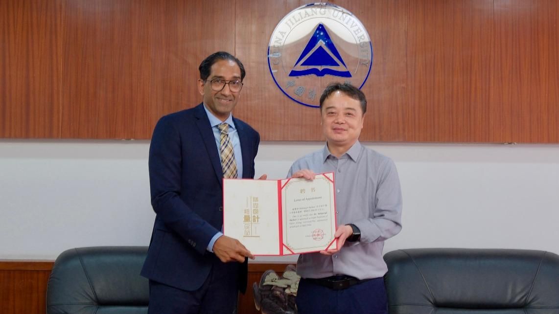 At the subsequent appointment ceremony, Secretary Xu Jiangrong presented President Bobjoseph Mathew with a certificate of appointment as a visiting professor and a commemorative gift on behalf of the university. Secretary Xu expressed the hope that President Mathew would visit CJLU frequently for academic exchanges, share his valuable expertise and insights in the field of legal metrology, and assist the university in advancing its metrology disciplines and enhancing the professional competence and global perspective of its students.