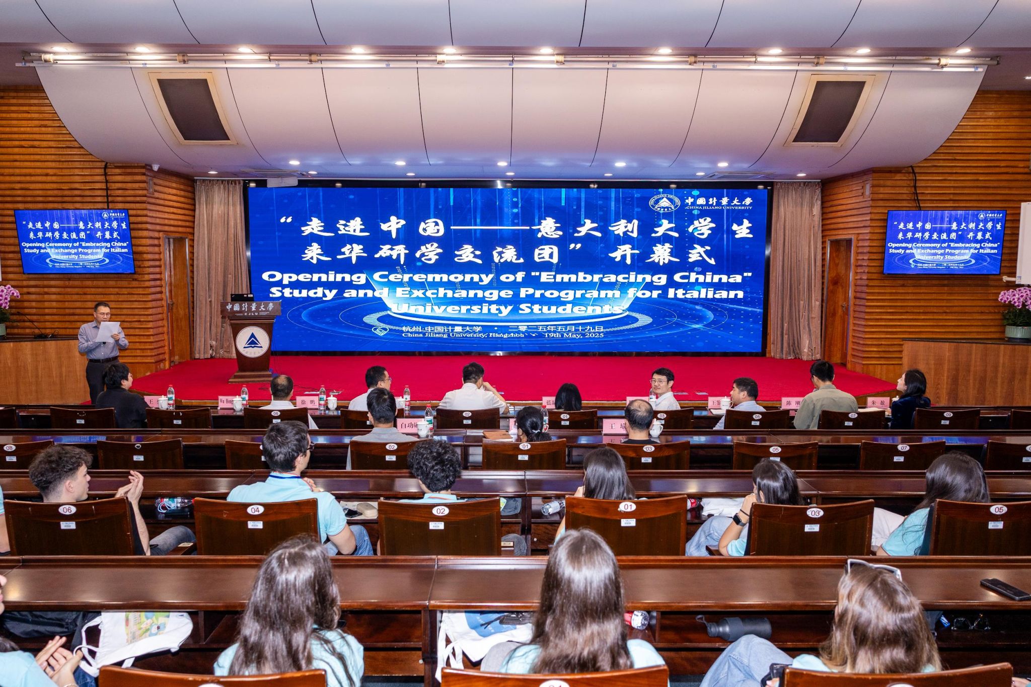 On the morning of May 19, the opening ceremony of the“Embracing China – Study and Exchange Program for Italian University Students”was held at China Jiliang University. A total of 80 Italian students gathered to embark on a 10-day journey of cultural exploration. The event was attended by Vice President of China Jiliang University, Professor Wang Binrui, Director of the International Office of the Zhejiang Provincial Department of Education, Ms. Lan Jingjing, and other distinguished guests who delivered opening remarks.