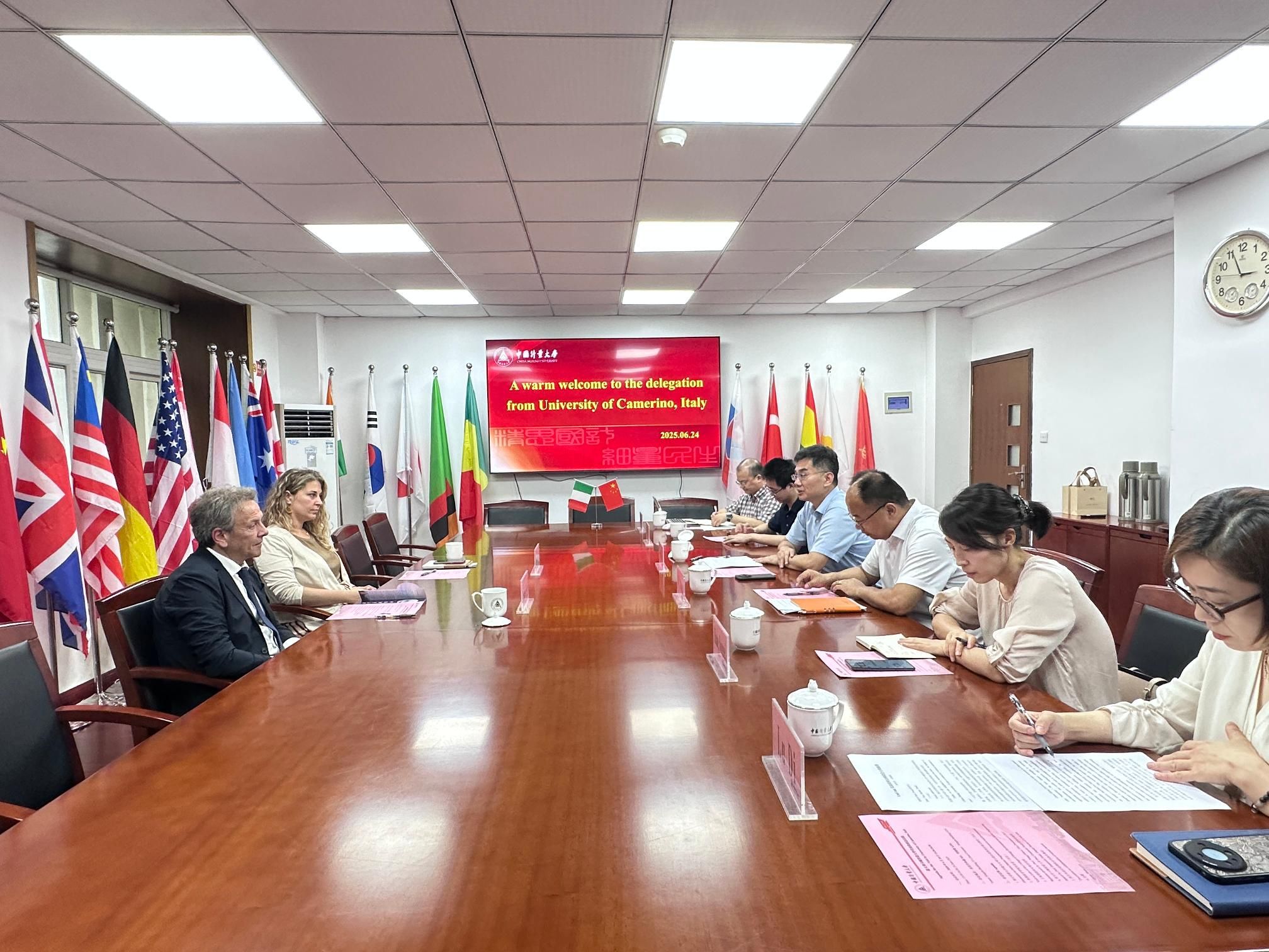 On the afternoon of June 24, Professor Emanuele Tondi, Vice Rector of the University of Camerino, and Marta Aureli, Head of International Affairs, visited China Jiliang University (CJLU) for in-depth discussions on areas such as the jointly established master's program in Resources and Environment and scientific cooperation in environmental and geological research. Vice President Wang Binrui warmly received the delegation in Meeting Room A216 of the Mingde Building. The meeting was also attended by representatives from the College of Energy Environment and Safety Engineering and the International Office.