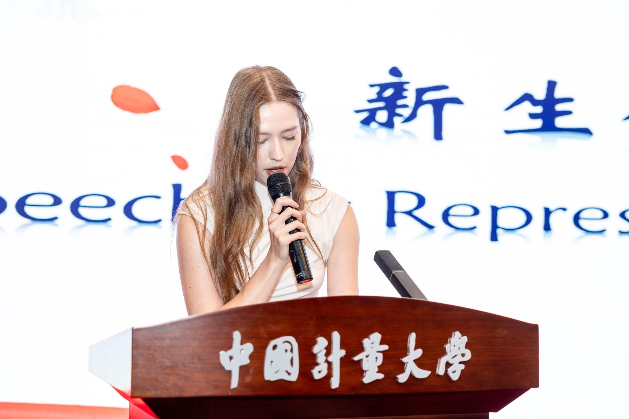 Vicky from Russia, a new master’s student in Instrument Science and Technology, delivered a speech on behalf of the freshmen. She expressed her gratitude for the opportunity to pursue her studies in such a diverse and beautiful university. She emphasized that meaningful learning goes beyond classrooms—it happens through conversations, exploration, and cultural understanding. She believes that learning Chinese will enable students to become connectors between nations.
