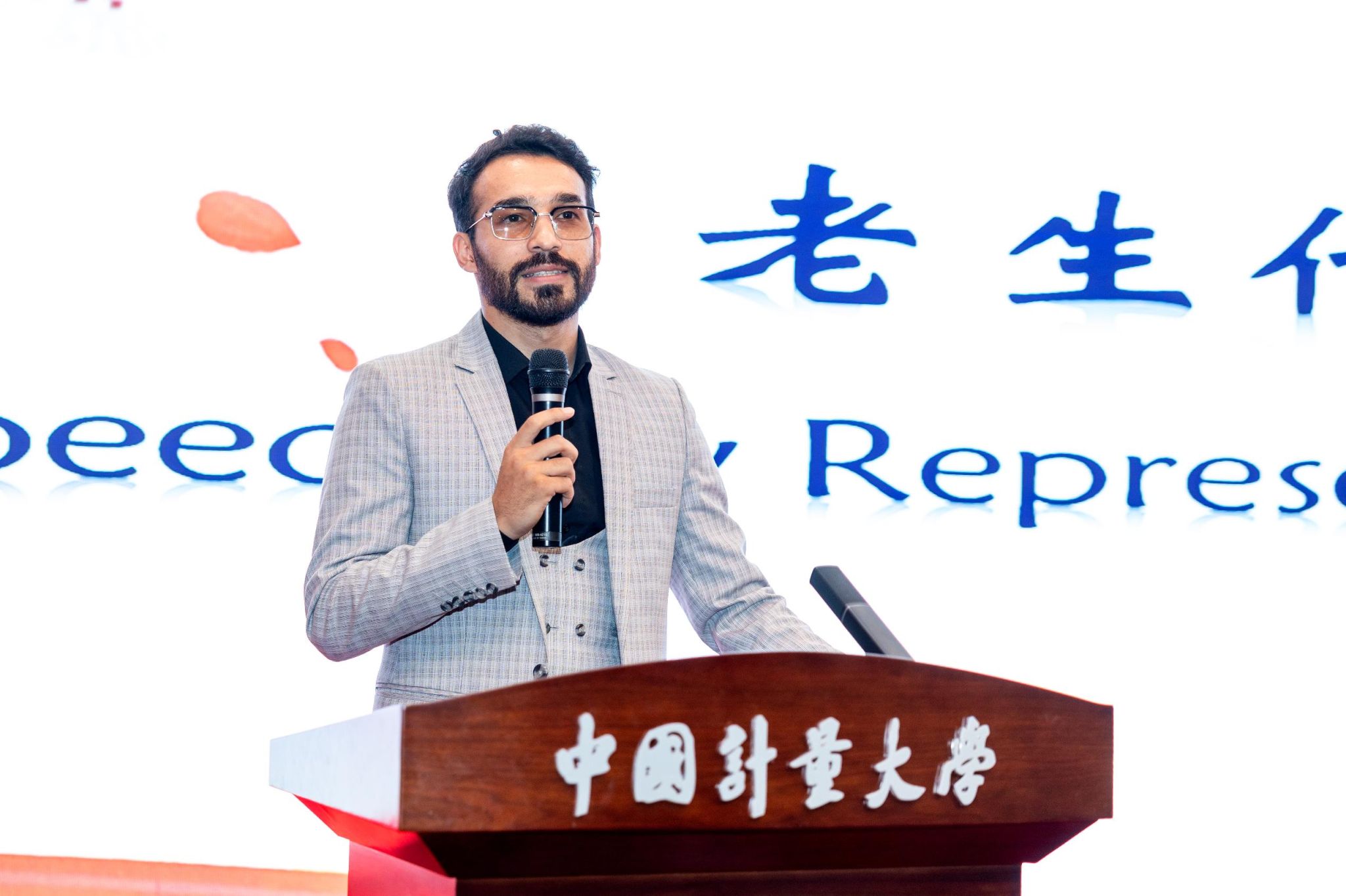 The ceremony officially began with welcoming remarks by Vice President Wang Binrui, who extended his greetings to all new international students. He highlighted the importance of international education exchange and encouraged students to actively engage in academic activities, cultural events, and social practices during their time at CJLU. He also expressed the hope that students would serve as bridges of friendship between China and their home countries.